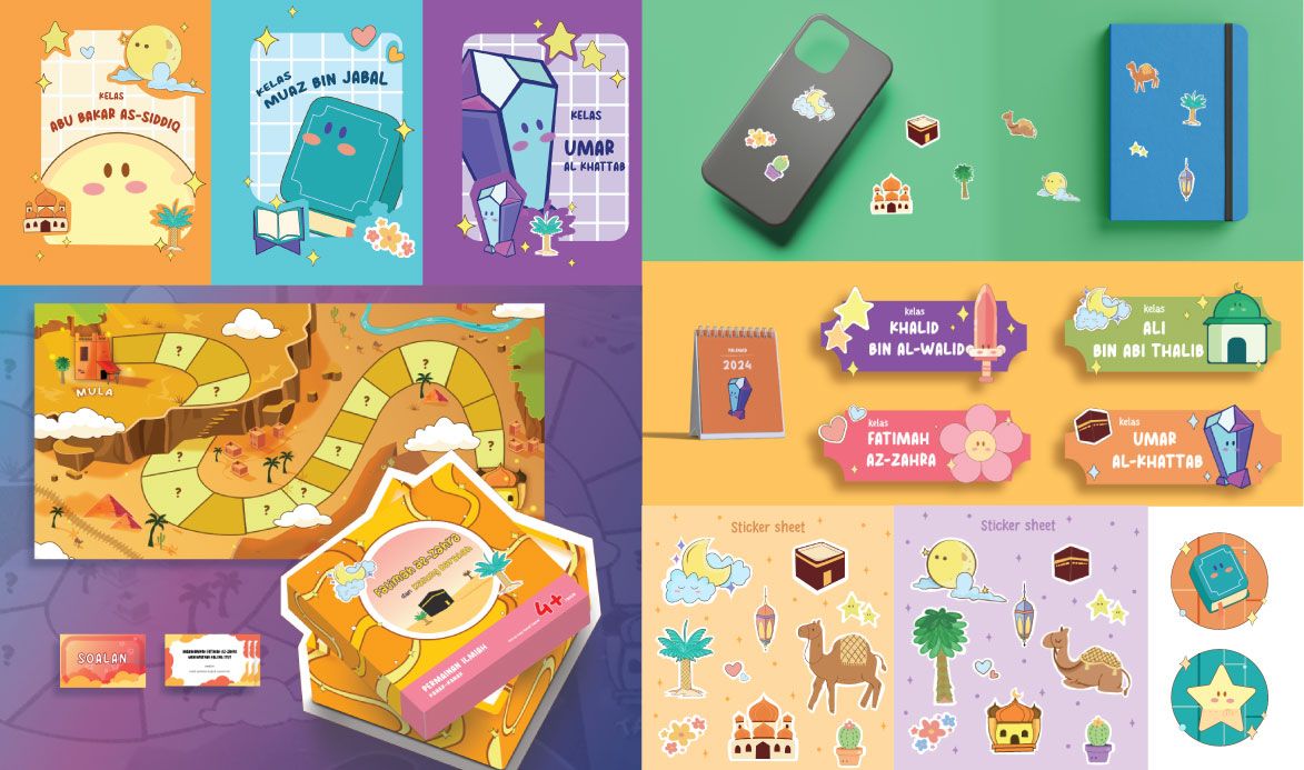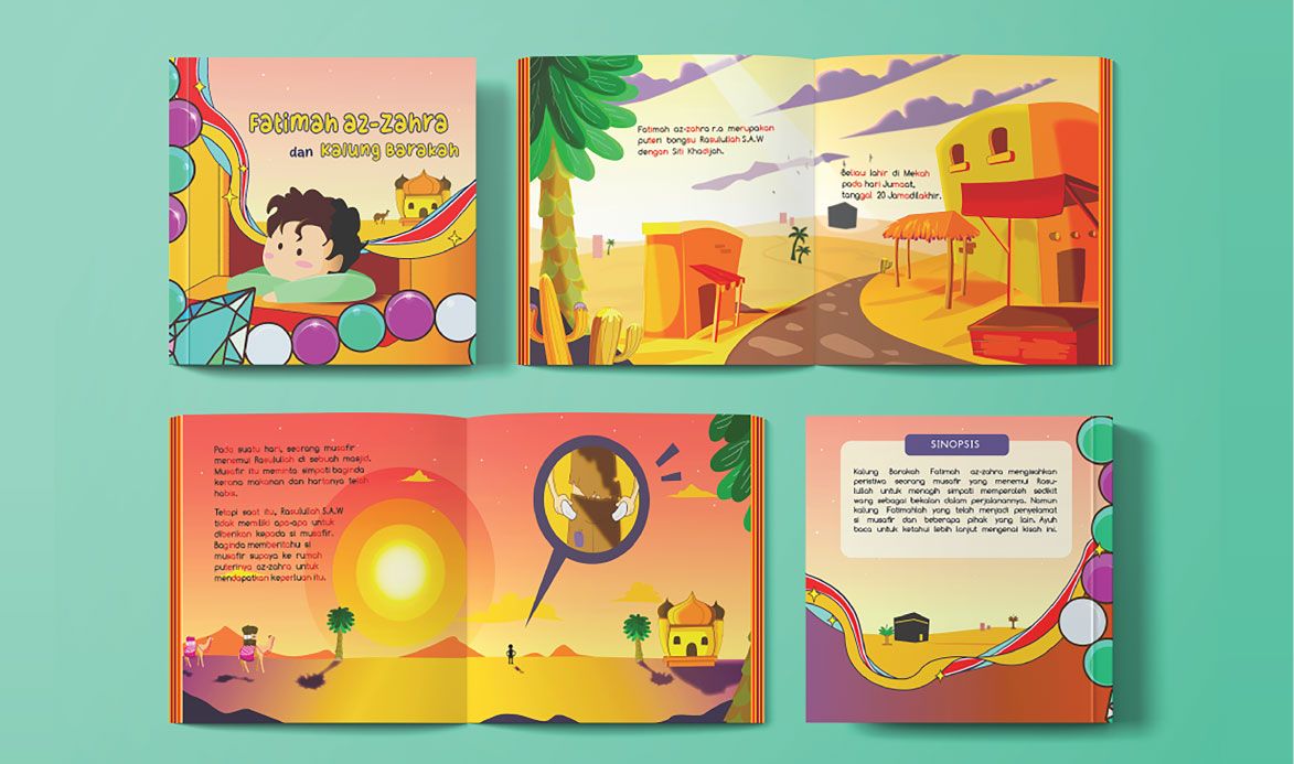 Visuals help youngsters learn a lot. To offer children a visceral sense for the Islamic figure behind their class name, the illustration book offers a clearer representation of life in the Middle East with positive content that hilighting Fatimah al-Zahra, an Islamic woman's idol good conduct. A collection of metaphor styles based on the persona of the class name been created to provide a sense of belonging for each classes. Each character is represented a symbol of joy and happiness while studying. The design of each graphic has a purpose: to inspire, energize, and delight youngsters as they learn about Islam.