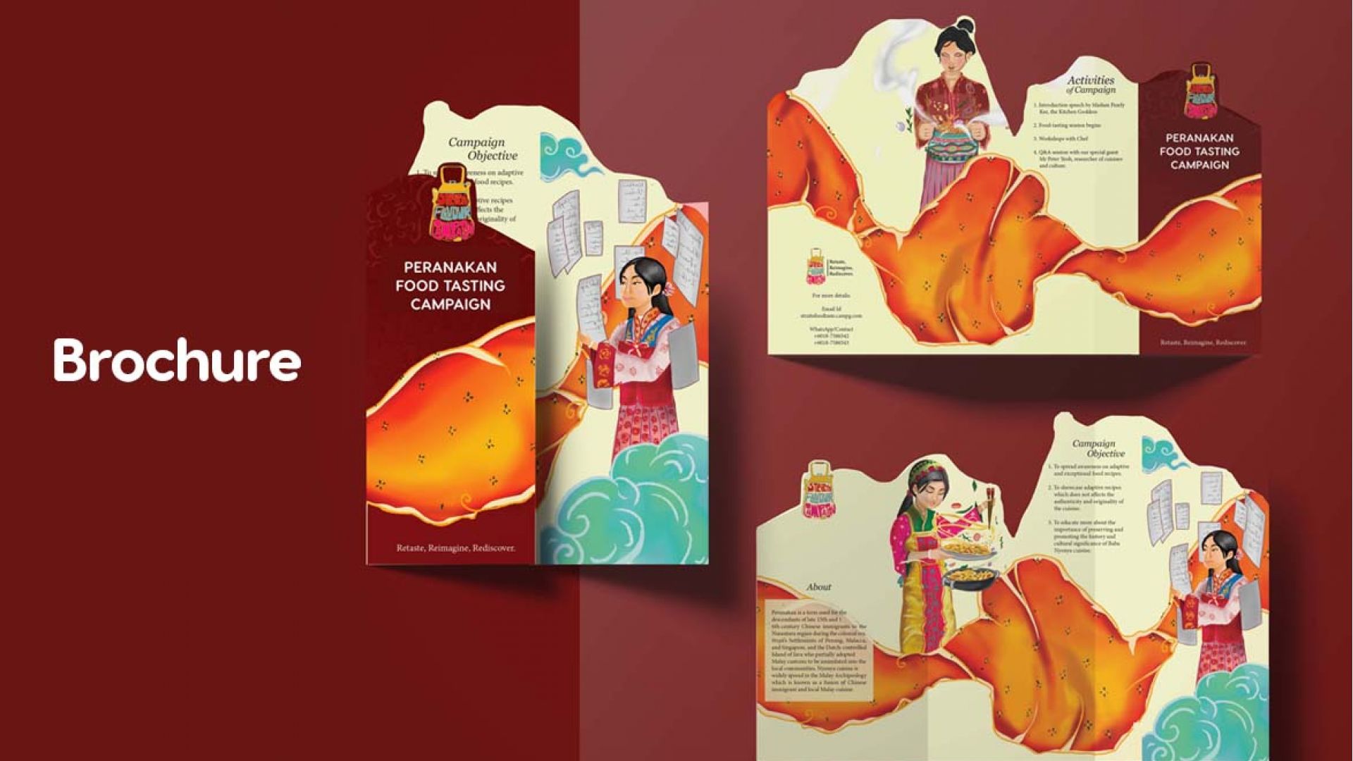 Peranakan is a term used for the descendants of late 15th and 16th-century Chinese immigrants to the Nusantara region during the colonial era. Nyonya cuisine is widely spread and is known as a fusion of Chinese immigrant and local Malay cuisine. The Peranakan Baba Nyonya Food Tasting Campaign aims to highlight and educate individuals about adaptive recipes that have been present in society unknowingly. This project will emphasize design strategy and creative thinking processes to contribute to development of a visual brand identity. Additionally, it will educate the target audience about adaptive recipes without compromising the authenticity, genuineness, and uniqueness of cuisine.