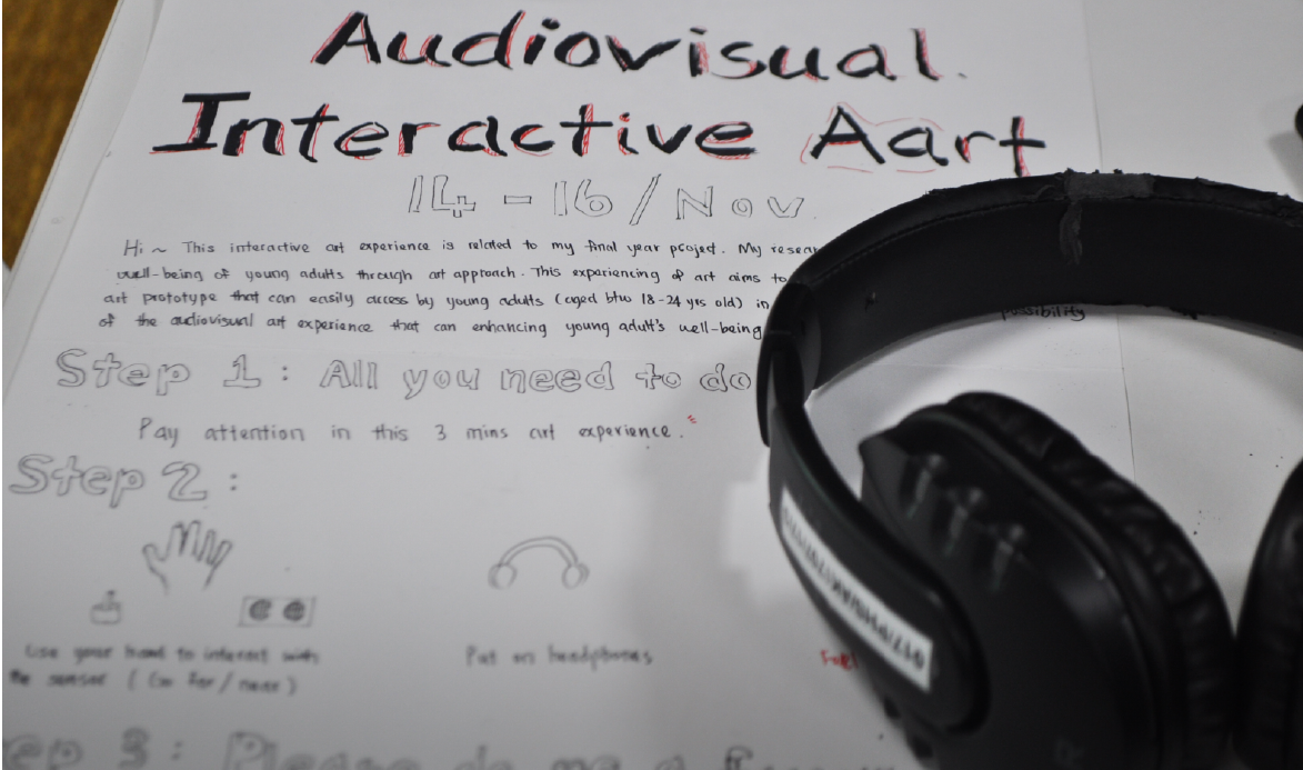 Immerse yourself in the captivating realm of the Audiovisual Interactive Art project, a harmonious fusion of dynamic audio and visual elements guided by an interactive control panel featuring an ultrasonic sensor. This innovative endeavour aims to provide young adults aged between 18-24 years old with a transformative experience, enhancing their overall well-being. Following a successful exhibition experience at the USM library on November 14 and 15, 2023, positive feedback flooded in, with participants expressing a sense of tranquility and peace. Enjoy this sensory journey, where technology and art converge to create a space for relaxation, introspection, and a heightened state of well-bein