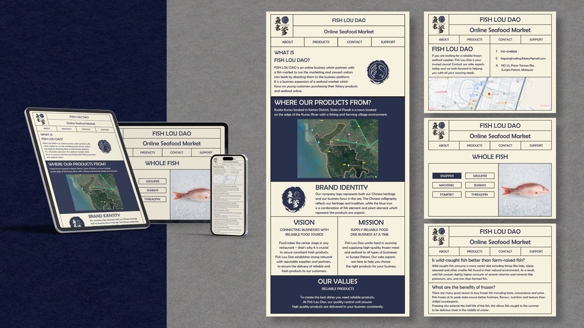 Fish Lou Dao is an online business which partners with a fish market to run the marketing and convert visitors into leads by directing them to the business platiorm. It is a business expansion of a seafood market which focuses on young customers purchasing their fishery products and seafood online. The main goal and objective of this business is to provide fresh and local seafood that keeps families eating healthy at a fair price.