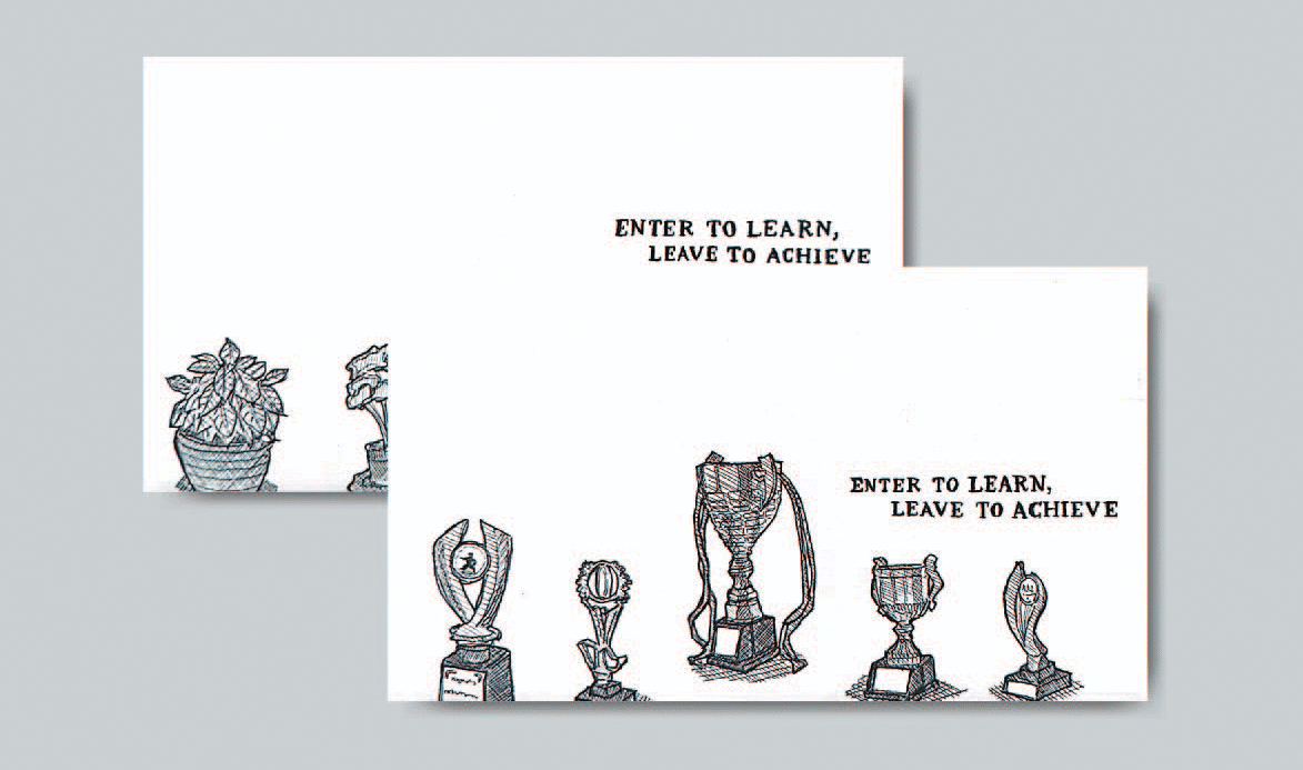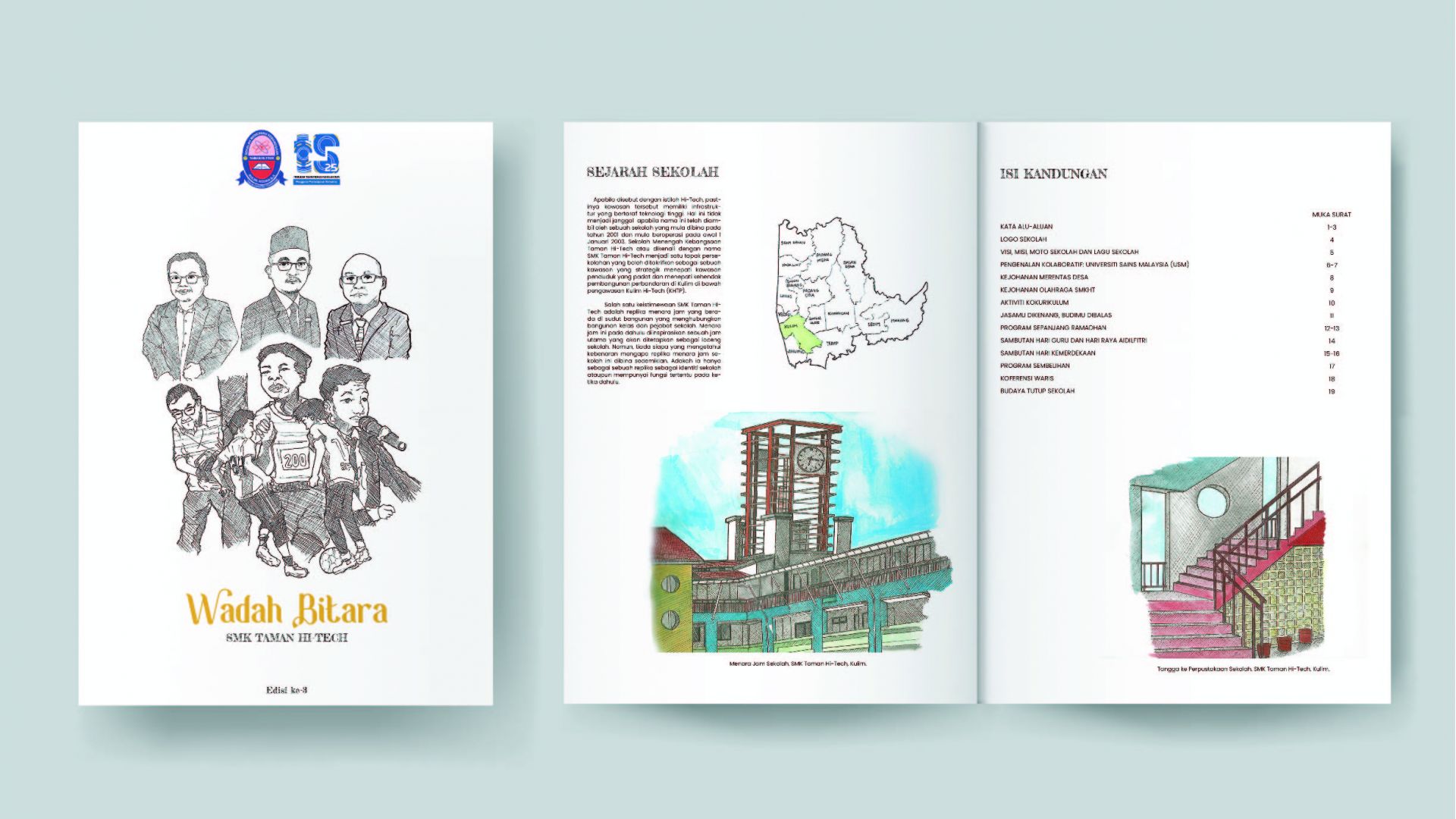 The modern-like fantasy school magazine is a potential learning tool that displays all activities and events organized by teachers and students. By using illustrations that use double crosshatching technique, students will be interested in reading and delving into the issues of magazine books without feeling bored. The use of illustrations that use fine pen and watercolor can help students understand the uniqueness of art that is only done by human hands.