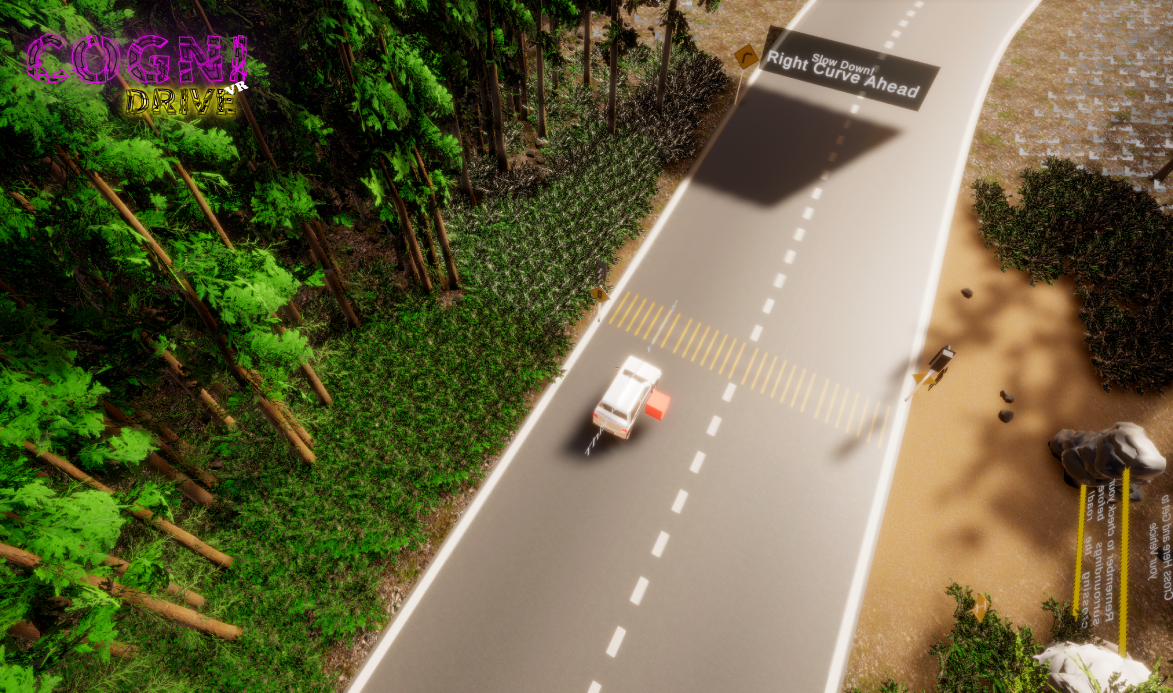 Cogni Drive VR is a car driving simulation tailored to help elderly people in rehabilitate and train their cognitive engagement in terms of judgment and executing proper action while driving on the road inside the virtual reality space. In the simulation they are required to react (stop, slow down and go) when encountering traffic lights and other signs that are implemented into the simulation.