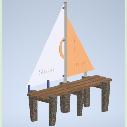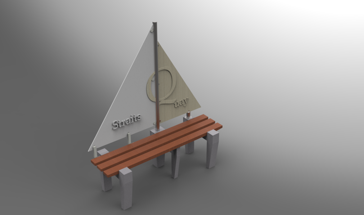 Q's is a street furniture created in Straits Quay, Penang. "Q" and "s" represent the words "Quay" and "Straits," respectively. I will incorporate some designs related to Straits Quay and yachts.