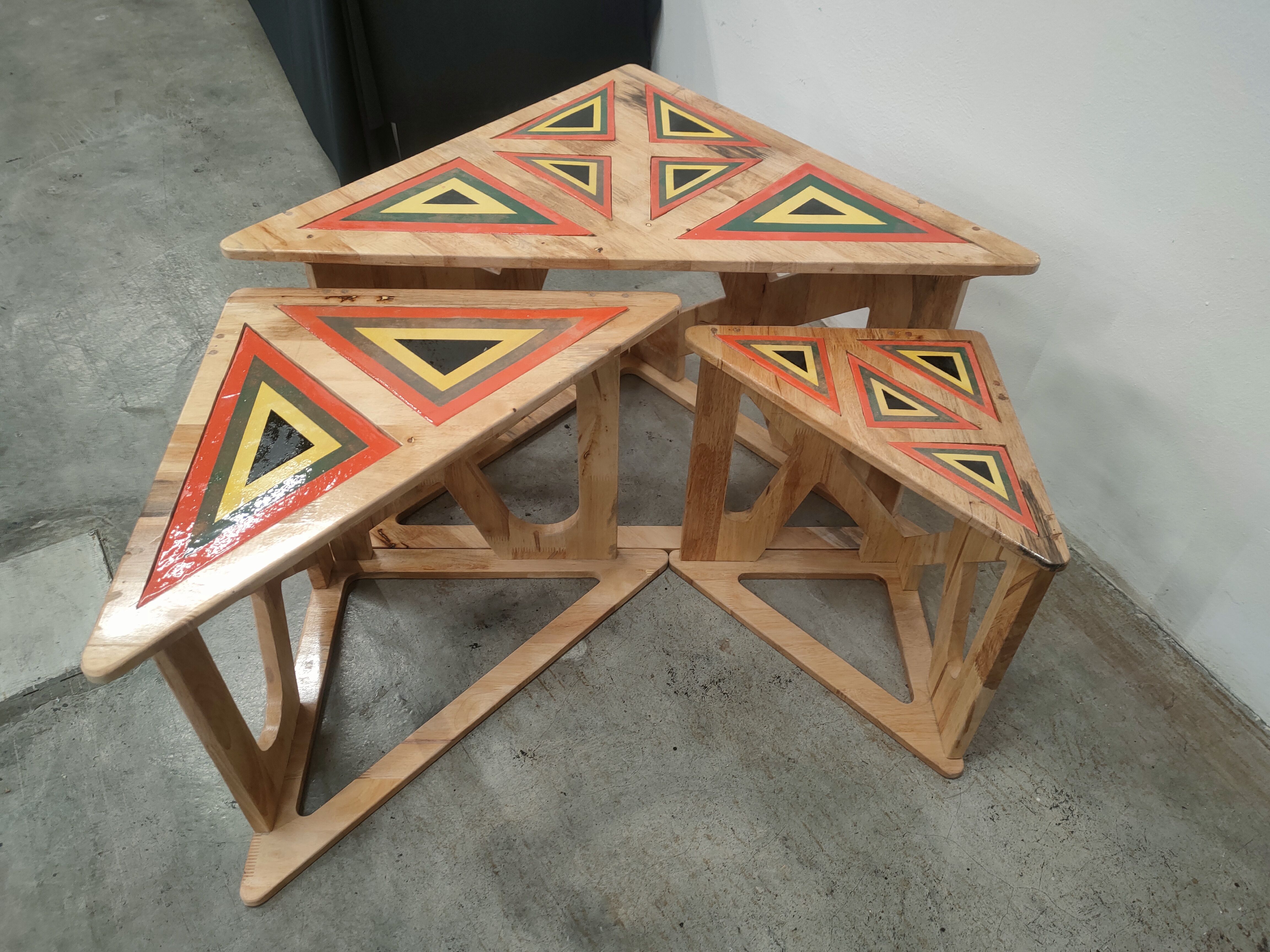This nesting coffee table innovatively combines traditional pattern which is Bajau on ceramic with the rubber wood. It combines cultural heritage with contemporary design. Combining artistry and functionality, this coffee tables perfectly combine traditional pattern on ceramic with the rubber wood to create a unique coffee table.